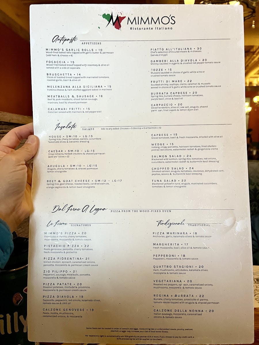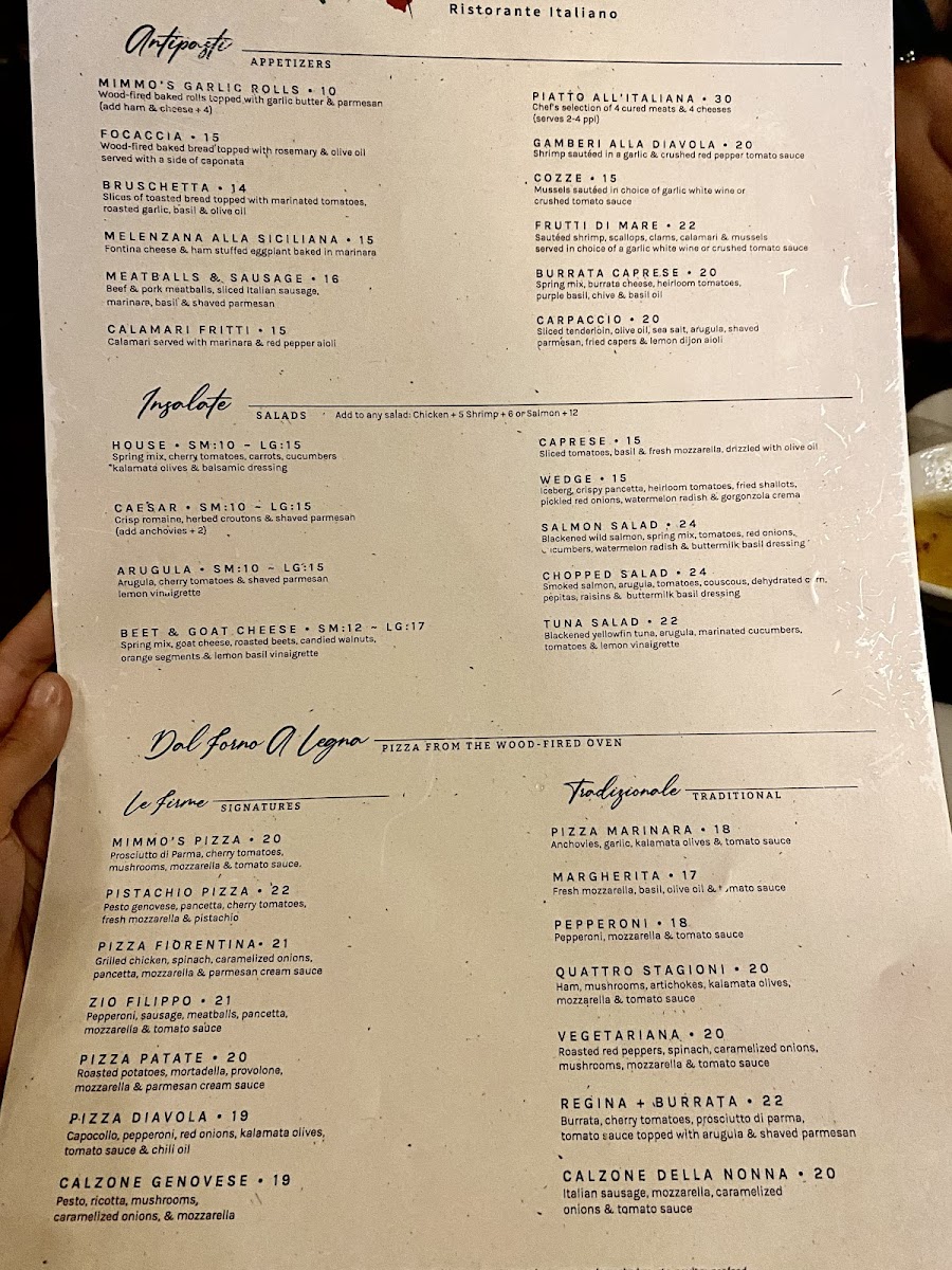 Welcome to Mimmo's Ristorante Italiano, a gem located in the heart of Destin, FL. This inviting eatery is renowned for its authentic Italian cuisine and friendly service, creating an atmosphere that feels like a home away from home. The menu features a variety of mouthwatering calzones, including the Calzone Casereccio, packed with ham and savory tomato sauce, and the indulgent Calzone Della Nonna, filled with Italian sausage and Gorgonzola. For those craving sandwiches, the Chicken Parmesan and Salsiccia Panino are standout options, bursting with rich flavors and fresh ingredients. Guests rave about the consistently high-quality dishes and the warm, attentive staff. The bustling ambiance adds a delightful vibrancy to your dining experience. Whether you’re celebrating a special occasion or enjoying a casual meal, Mimmo’s has something to delight every palate. Don’t forget to indulge in their delectable desserts!